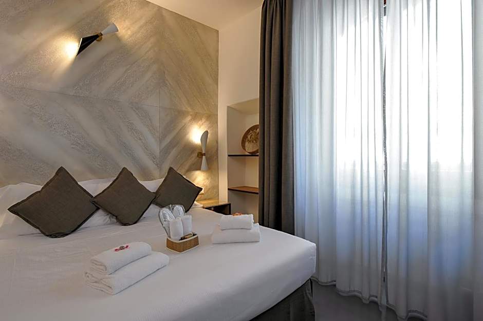This double room features a flat screen tv with SKY TV channels, safe deposit box, coffee & tea station, complimentary mini-bar, independent air conditioning.